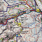 - All trails rated for difficulty; mileage between junctions mapped. Plus mileage for some big loops shown.