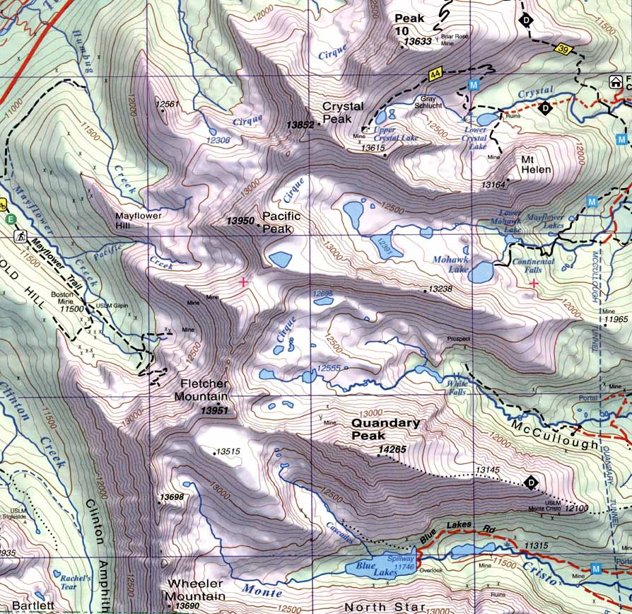 Popular 14'er rises SW of Breckenridge, in the heart of the dramatic 10 Mile Range.