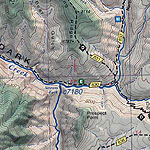 - Careful mapping and graphic stressing of natural hydrography to improve comprehension of the terrain forms. Numerous waterfalls and cascades published here for the first time.